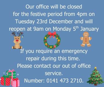 Emergency RepairsTo report an emergency repair out of office hours please telephone 0141 473 2710. Are you struggling to pay your rent?Contact your Housing Officer immediately if you are struggling to pay your rent. We are here to help.